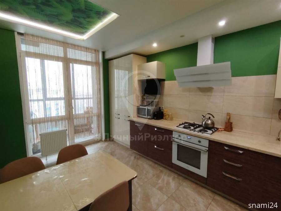 В квартире выполнен качественный ремонт из современных материалов (натяжные потолки, ламинат на полу в комнатах, плитка на кухне и в ванной комнате, качественная входная дверь, окна ПВХ, теплый пол на кухне, в прихожей, ванной комнате). В квартире остается вся мебель и техника на кухне, мебель в прихожей. Санузел раздельный.