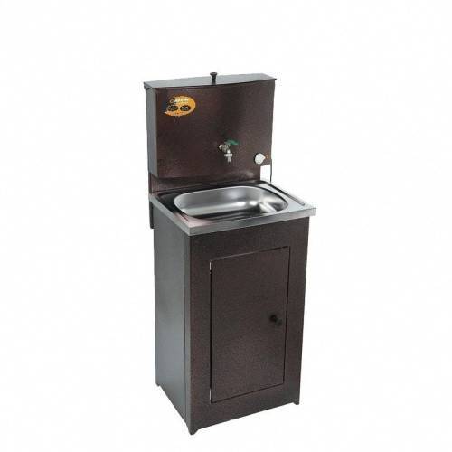 Умывальник с подогревом, белого цвета, с тумбой и пластиковой мойкой, от российского производителя ВИХРЬ. В городах все привыкли к центральному водоснабжению, но на дачах такое благо есть не у всех, что вызывает определённые неудобства, но проблема вполне решаема. При помощи умывальника можно умыться, вымыть не только руки, но ещё и посуду и овощи. Такое устройство просто незаменимо в быту, с ним комфортно и удобно. Умывальники настолько удобны, что могут стать заменой полноценного водопровода.Умывальник ВИХРЬ отличается особой функциональностью, так как его можно установить как внутри дома, так и снаружи. Внутри тумбочки ставится ведро или шланг для слива воды. Так как в таком умывальнике есть раковина, то его можно свободно использовать для мытья посуды.Умывальник с подогревом наиболее комфортный вариант для дачи, т.к. в случае отсутствия центрального водоснабжения, он поможет решить проблему подачи воды и сделает её горячей. Такой умывальник можно установить в летней кухне, внутри дома, на террасе, то есть там, где имеется розетка для подключения нагревательного элемента. Преимущества: