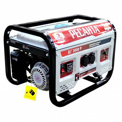 Электрогенератор бензиновый (бензогенератор) - электрическая машина, предназначенная для автономного электроснабжения в повторнократковременном режиме потребителей бытового и аналогичного назначения, относящихся к классу переносных электроприемников. В качестве первичного двигателя используется карбюраторный двигатель, топливом для которого является неэтилированный бензин. В условиях временного или постоянного отсутствия электроэнергии обеспечить питание электрооборудования можно с помощью генератора РЕСАНТА модели БГ 3000 Р. Несмотря на компактные габариты и относительно небольшой вес, бензогенератор демонстрирует высокий КПД и хорошие показатели мощности. Генератор РЕСАНТА БГ 3000 Р имеет увеличенный ресурс двигателя, медную обмотку альтернатора. Оснащен многофункциональным цифровым дисплеем с индикацией величины напряжения, частоты тока и счетчиком моточасов. Агрегат оснащен надежным одноцилиндровым двигателем, который работает на неэтилированном бензине. Сфера применения установки включает в себя, как коммерческие объекты (магазины, ларьки, офисы), так и загородные дома, дачи, подсобные хозяйства. При покупке бензинового генератора Ресанта БГ 3000 Р, Вы останетесь довольны его прекрасной производительностью и компактным внешним видом.